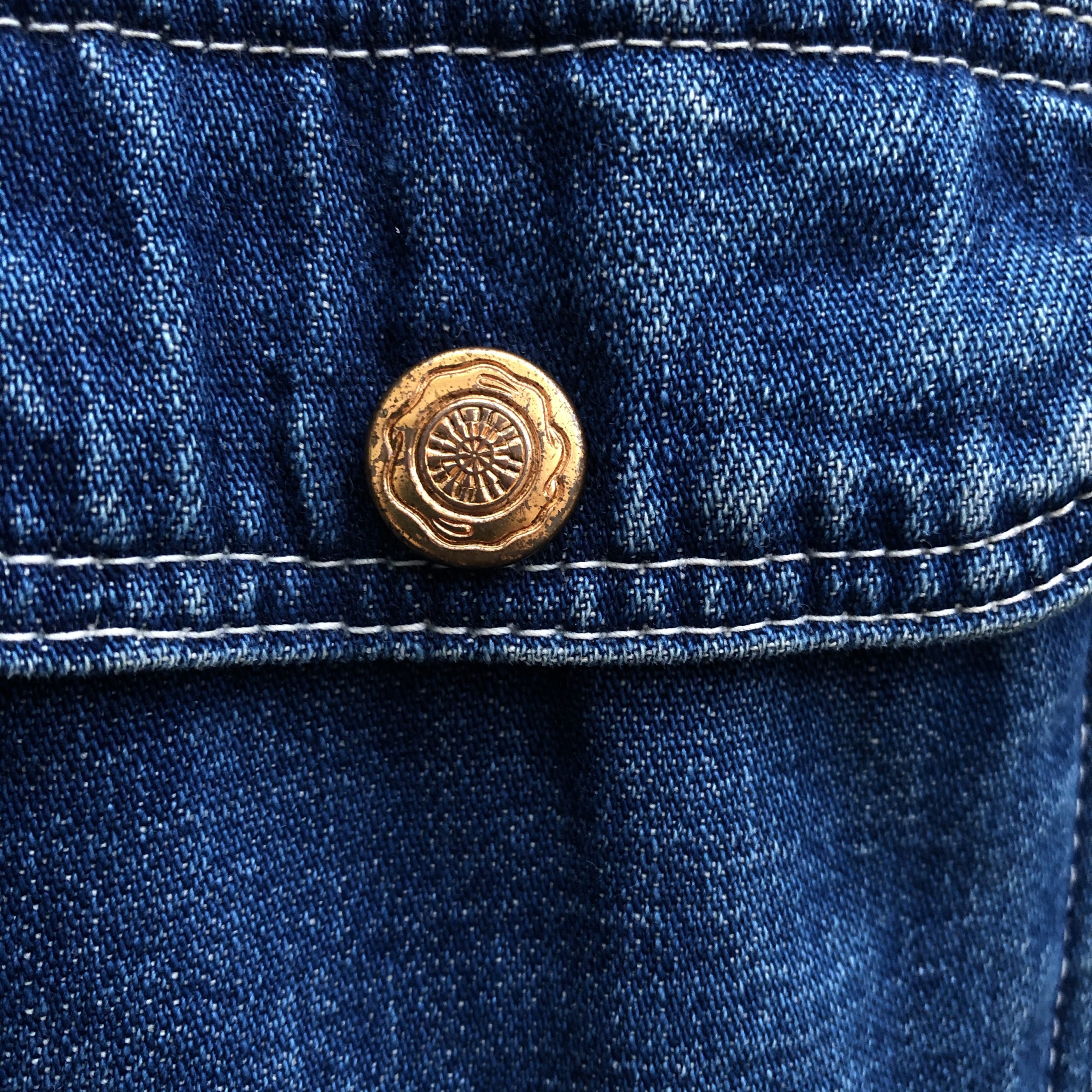 この花のような刻印がされたボタン、あえてロゴではないところが何ともかわいらしいと思いませんか。
