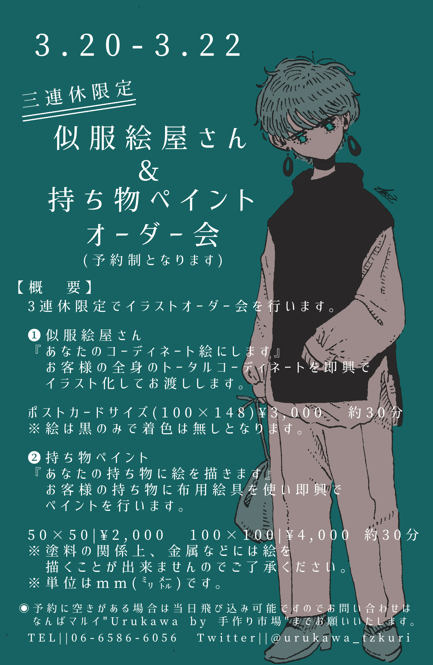 さらに前回のマルイでのポップアップから更にパワーアップした今回は3月20日〜22日の3連休に『オーダーイラスト会』のイベントを行わさせていただきます。